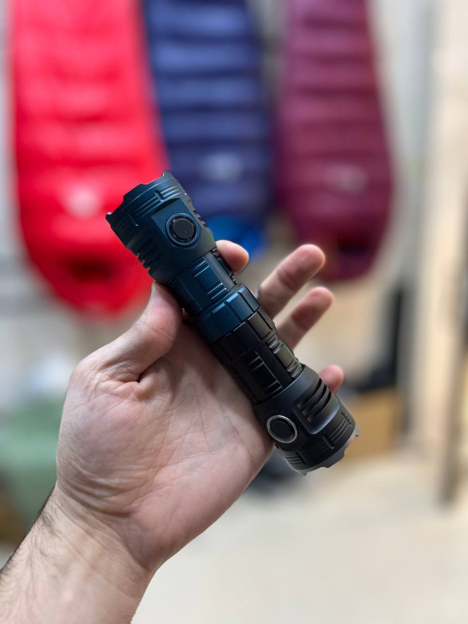 بدنه ساخته شده از الیاژ الومینیوم چراغ قوه کینساچ (KINSACH) مدل F80 یکی از نقطه قوت های این محصول است که استحکام و دوام فوق العاده ای دارد.استحکام ان به گونه ای است که اگر این چراغ قوه به گونه ای تحت فشار قرار گیرد یا ضربه ای به ان وارد شود مثل افتادن از ارتفاع چراغ قوه همچنان بدون اسیب باقی بماند و در عملکرد ان اختلالی ایجاد نمی شود که این ویژگی برای استفاده ی کوهنوردی که احتمال ضربه به محصول است بسیار عالی است. بی شک یکی از مهمترین قطعات چراغ قوه، لامپ آن می باشد که نوع آن در مدل های قدیمی و جدید با هم متفاوت است.این چراغ قوه با داشتن 8 لامپ از نوع ال ای دی و داشتن 5 حالت نوردهی اصلی و 3 حالت جشمک زن یکی از بهترین چراغ قوه ها از این بابت است.حالت های نوردهی چراغ قوه به این صورت نور خیلی کم،نور کم،متوسط،نور زیاد و نور خیلی زیاد است که هر کدام از این حالت ها و حالت های چشمک زن با فشار دادن دکمه ی اصلی روی دستگاه به هم تبدیل می شوند. همان طور که خدمت شما عزیزان عرض کردم چراغ قوه کینساچ دارای 3 حالت چشمک زن است.حالت اول چشمک زن تند بوده و حالت دوم ان کند است اما حالت سوم این چشمک زن به رنگ قرمز است که چراغ قوه های کمی ان حالت سومی را دارند.حالت چشمک زن هم همان طور که همه شما ها میدانید مانند سایر چراغ قوه های دیگر برای حالت های اضطراری و درخواست کمک مورد استفاده قرار میگیرد. مهم ترین ویژگی یک چراغ قوه برد نور و پخش نور و قدرت ان است که در هنگام تهیه چراغ قوه حتما این دو مورد را در نظر میگیرند.قدرت روشنایی کینساچ F82 تقریبا 2500 لومن است و پخش نور ان حدود 200 متر را به طور کامل روشن می کند.دستگاه دارای یک عدد باتری لیتیومی بوده که ظرفیت ان 2000 میلی امپر است.باتری نیز از برند خود کینساچ است که در صورت نیاز اصل ان در بازار موجود است. بسته بندی چراغ قوه KINSACH نیز به این صورت است که خود چراغ قوه به همراه یک عدد باتری 2000 میلی امپری،کابل شارژمخصوص (تایپ سی)چراغ قوه و بند دستی داخل یک کیف مشکی قرار گرفته اند که خود اسم و لوگوی کینساچ بر روی ان نوشته شده است.این چراغ قوه سایز بزرگ نیز دارد که از لحاظ ویژگی شبیه به هم هستند و فقط اندازا ان و ظرفیت باتری انها فرق میکند.شما عزیزان میتوانید هم کینساچ F82 سایز بزرگ و هم کینساچ F80 سایز کوچک را با خیال راحت از سایت ازادی و با اطمینان تهیه کنید.