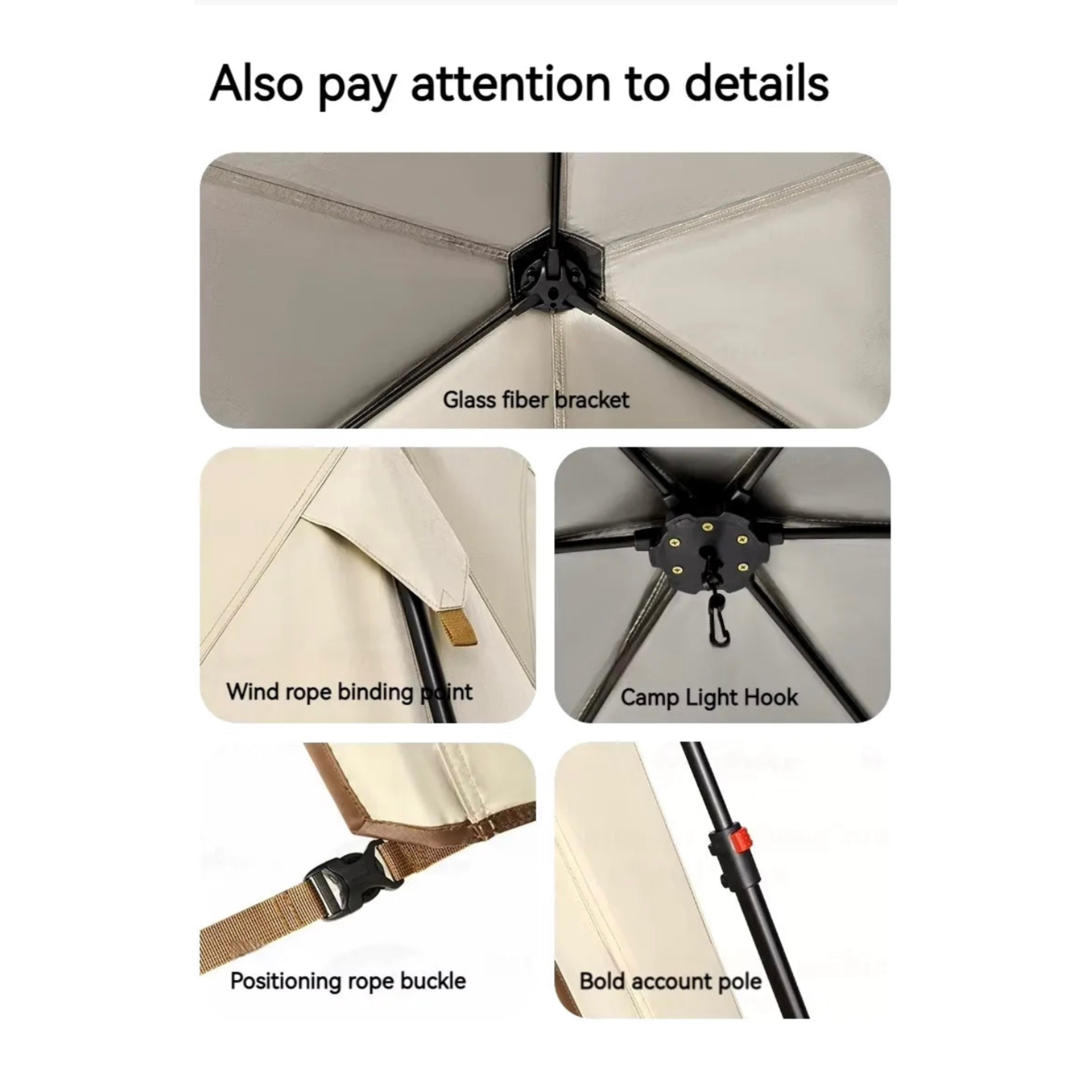 پارچه سایبان از 150D Titanium Black Oxford Cloth با پوشش ضد اشعه UV ساخته شده و علاوه بر مقاومت بالا در برابر نور خورشید، دارای مقاومت آب PU 5000MM+ و عایق حرارتی مناسب برای استفاده در هر چهار فصل است. این ترکیب مواد باعث میشود سایبان در برابر باد، باران و تابش مستقیم خورشید عملکرد فوقالعادهای داشته باشد.