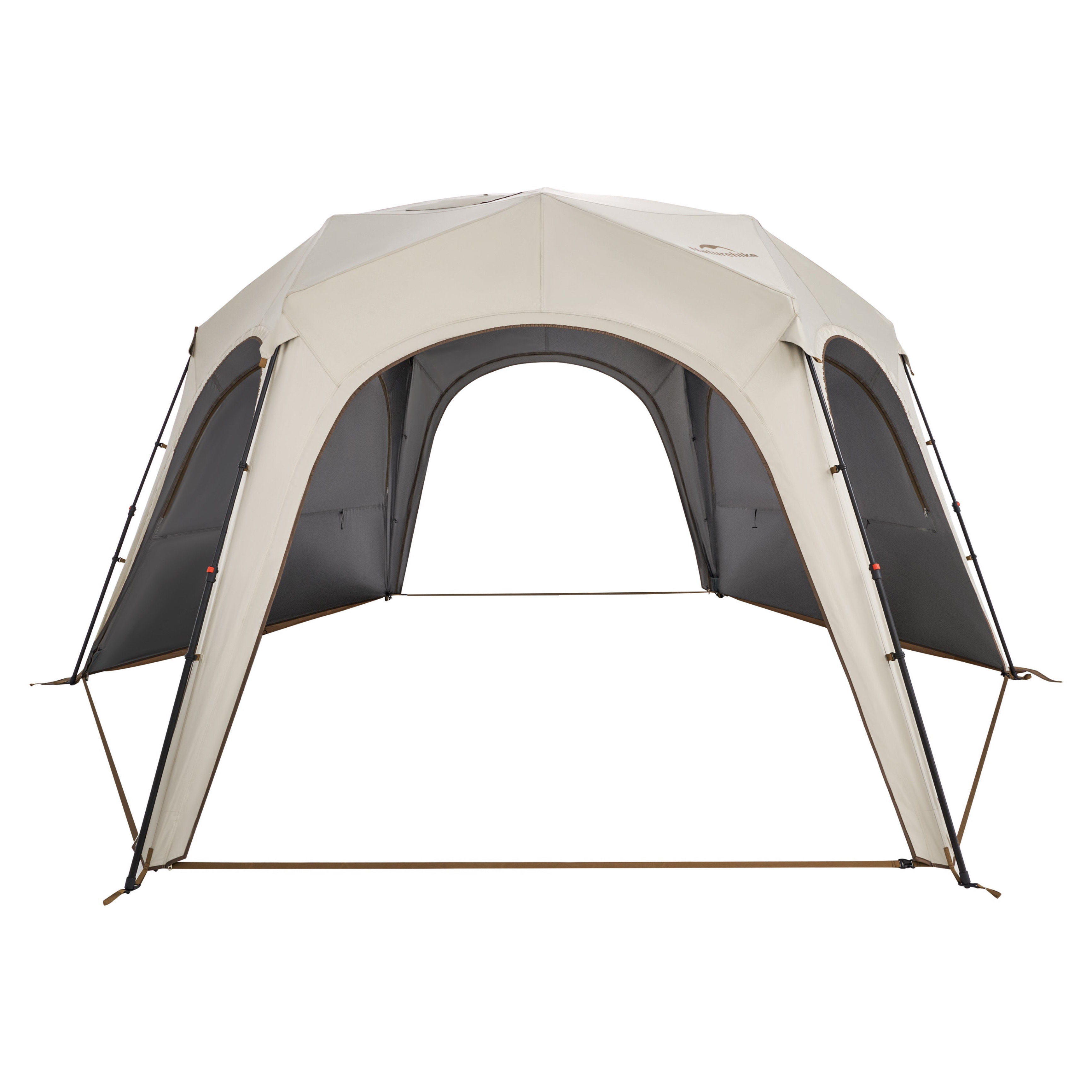 ساختار سایبان از میلههای فایبرگلاس با هسته آهنی ساخته شده و سیستم پاپآپ آن نصب سریع و آسان در دو مرحله را ممکن میسازد؛ کافی است سقف را بالا برده و میلههای نگهدارنده را در جای خود قرار دهید. وزن مجموع چادر حدود 12.5 کیلوگرم است و بستهبندی جمعوجور آن به ابعاد 108 × 25 × 25 سانتیمتر حمل و نقل را بسیار ساده میکند.